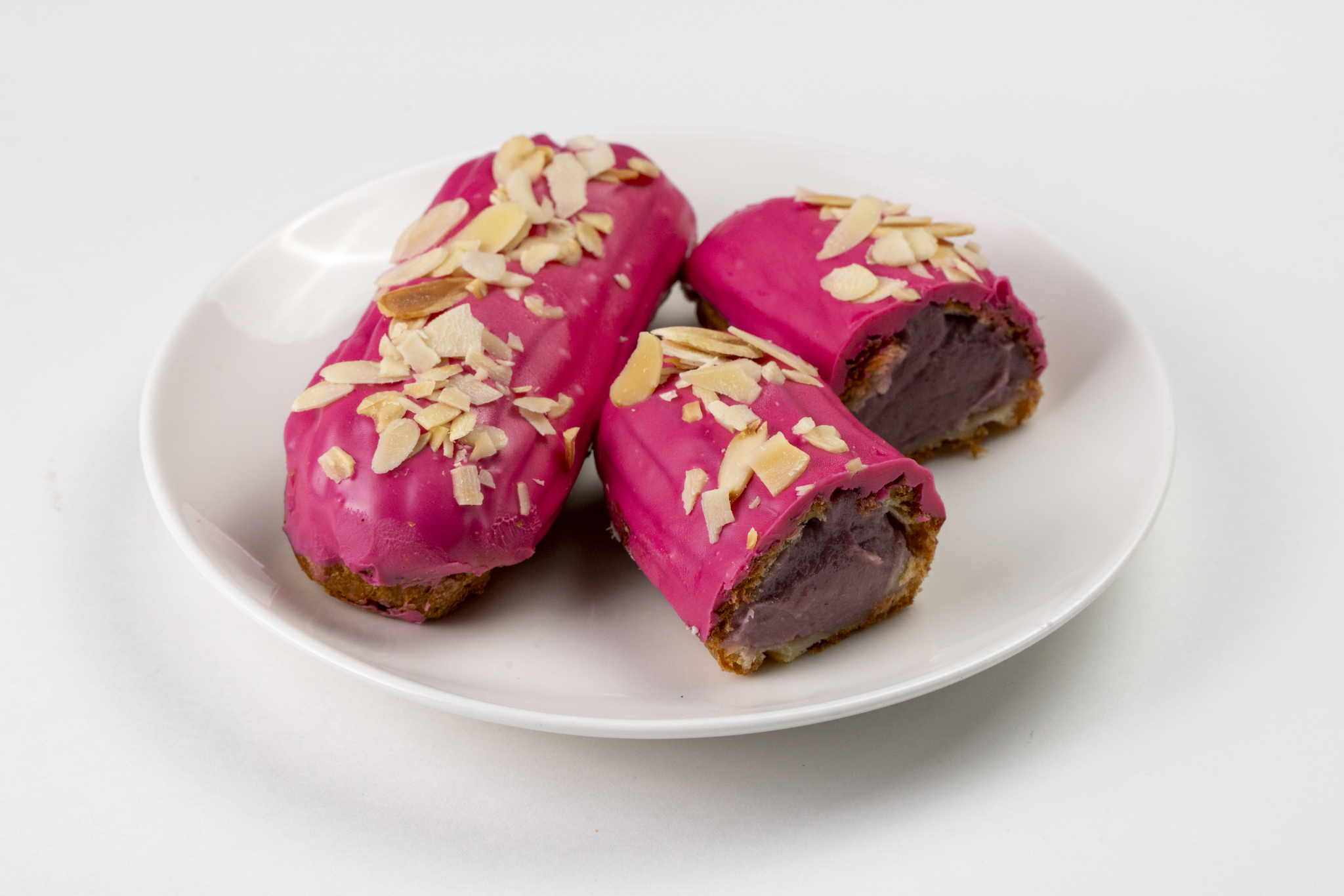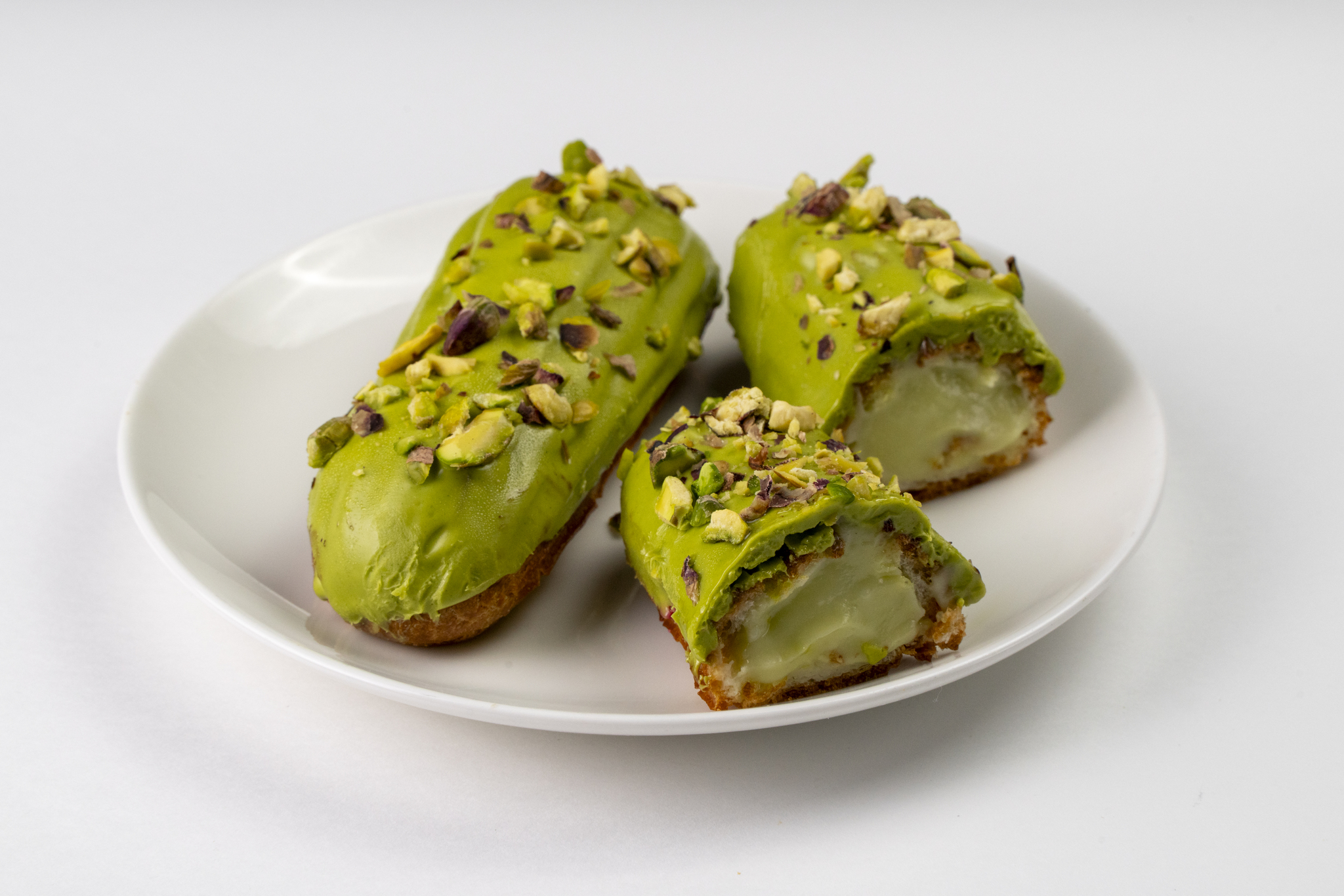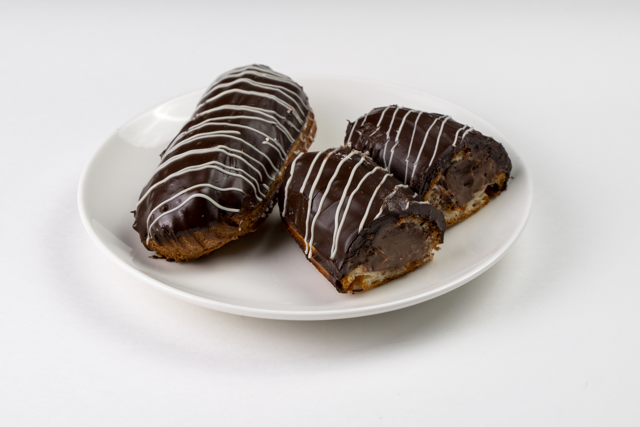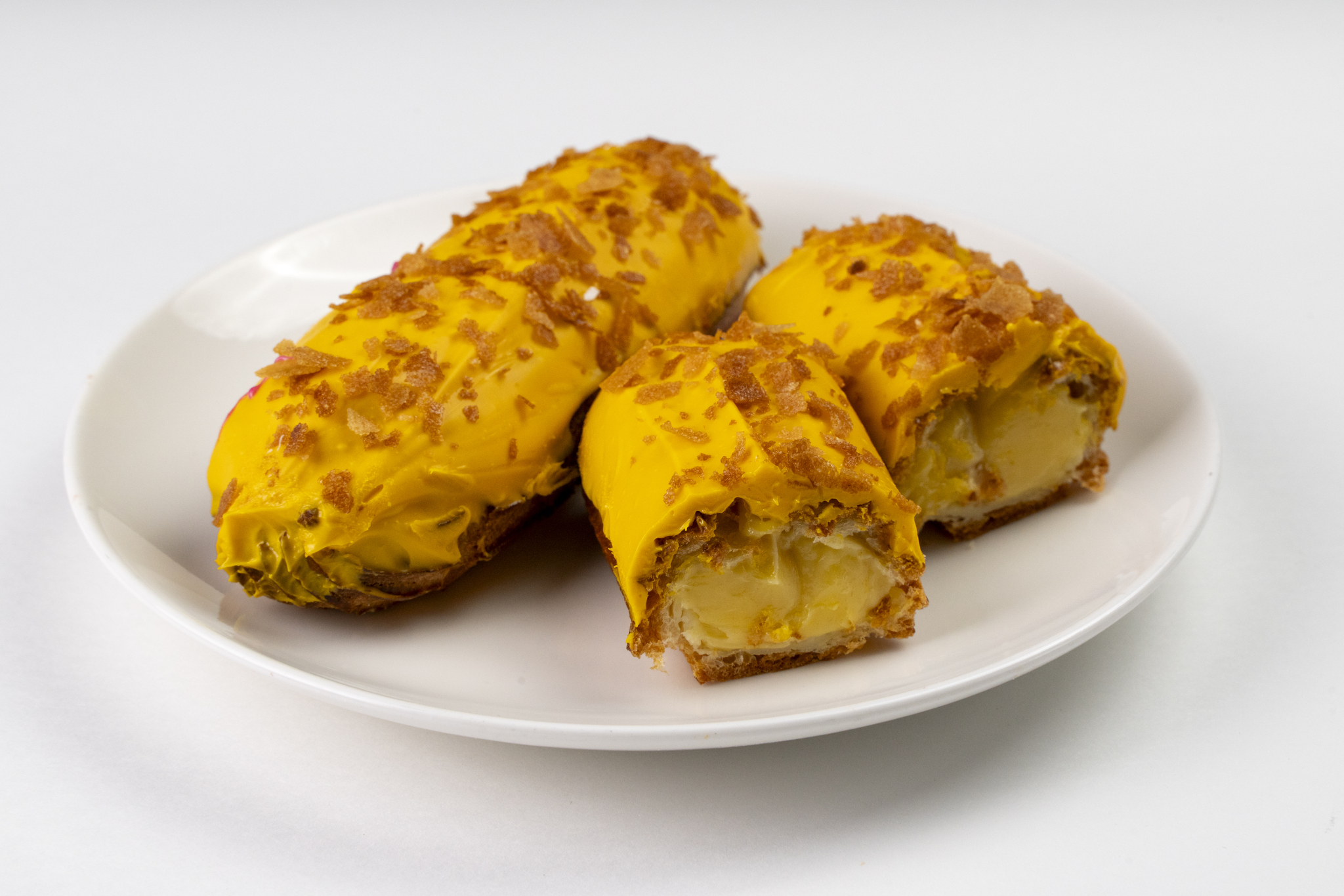 Набор эклеров ассорти — это пять изысканных десертов с хрустящим заварным тестом и нежными начинками. От классического шоколадного до экзотического с манго-маракуйей — каждый эклер это маленькое путешествие в мир французской кондитерской классики.
