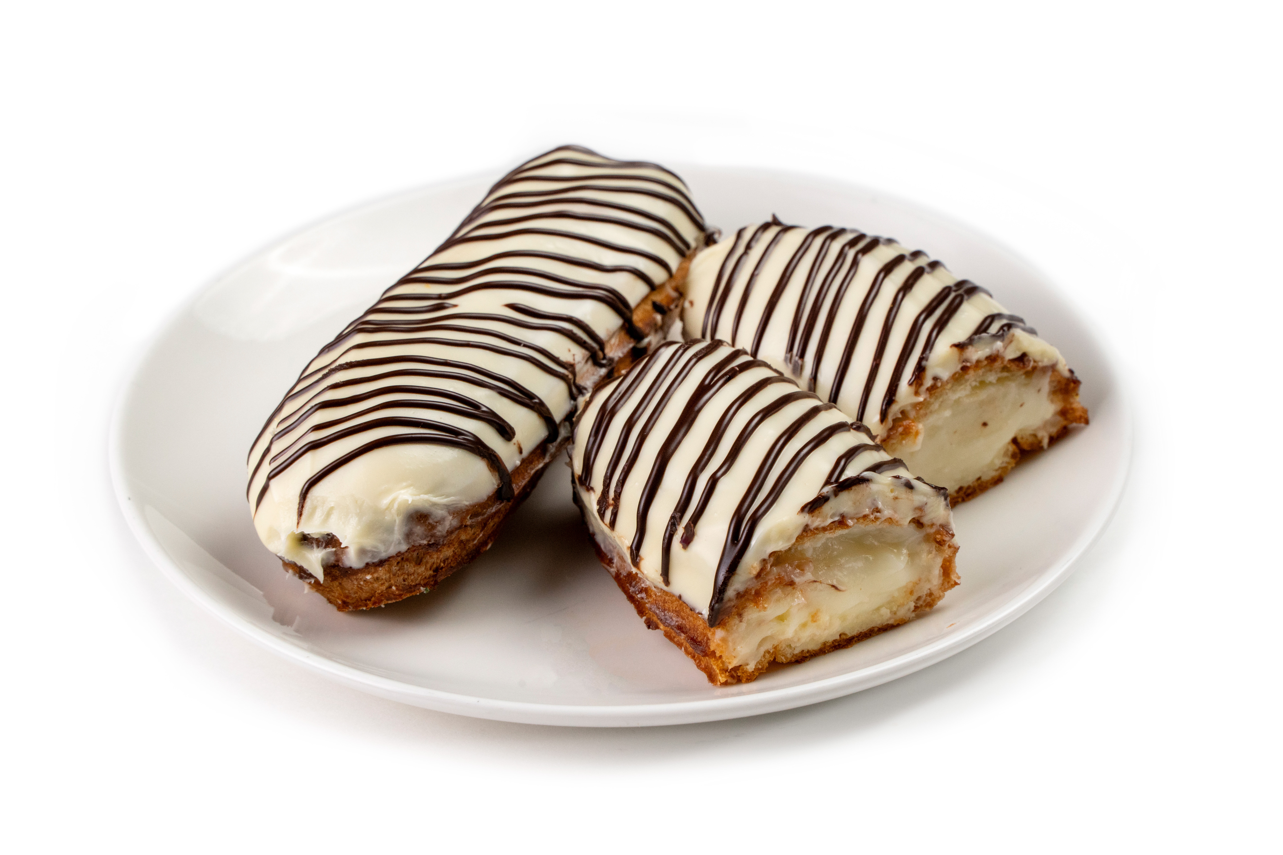Погрузитесь в мир изысканных вкусов с нашим ванильным эклером, наполненным нежным заварным кремом патисьер. Каждый эклер изготовлен из воздушного заварного теста, которое тает во рту. Внутри вы найдете насыщенный и ароматный ванильный крем, который придаст каждому укусу неповторимую сладость. Завершает этот десерт глазурь из белого шоколада, создавая гармоничное сочетание текстур и вкусов. Идеальный выбор для настоящих гурманов!
