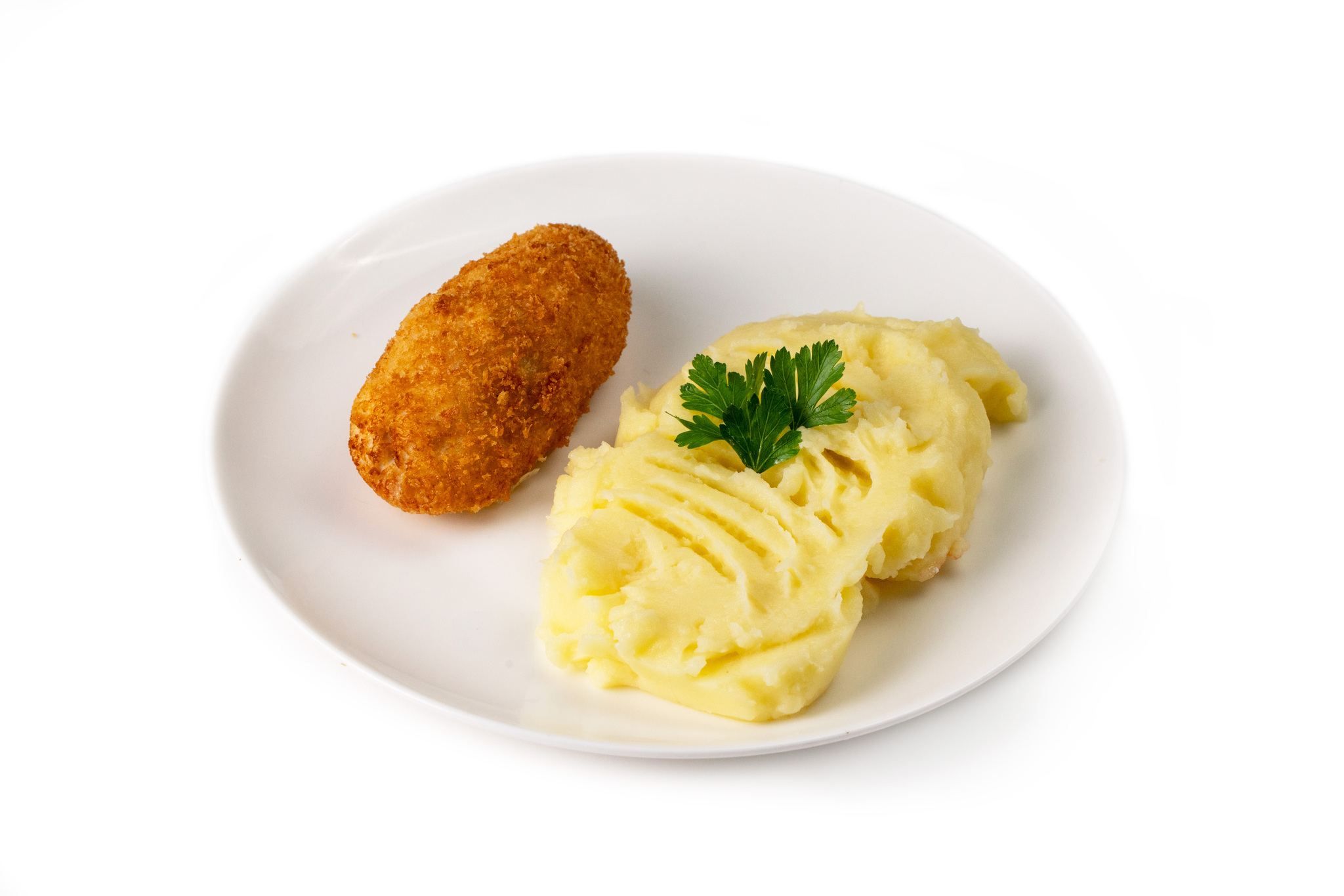 Пюре: картофель, бульон куриный, масло сливочное, соль, зелень (укроп, петрушка).