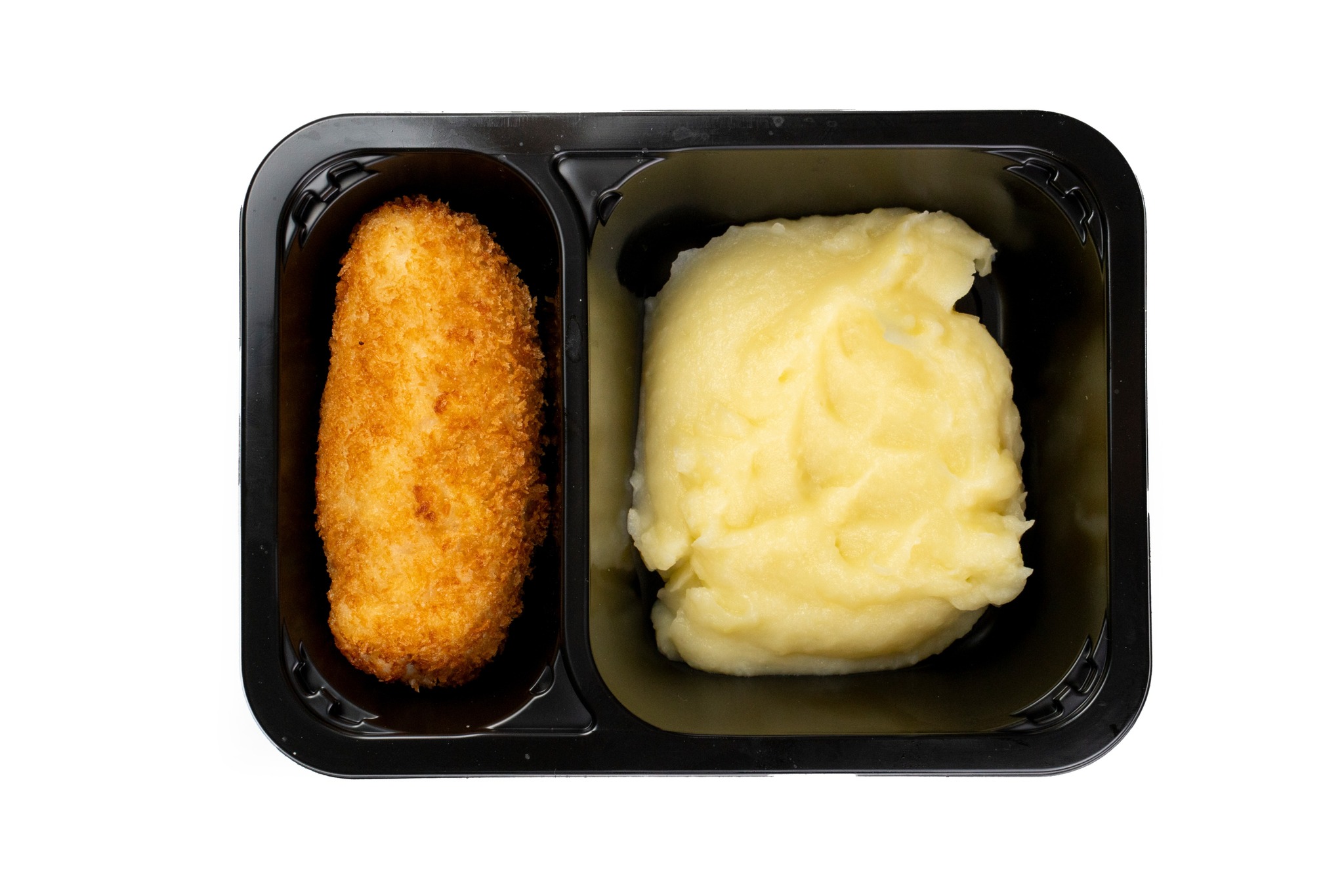 Котлета: куриное филе (60%), масло сливочное (15%), хлеб пшеничный, яйцо куриное, мука, масло растительное, соль, перец черный.