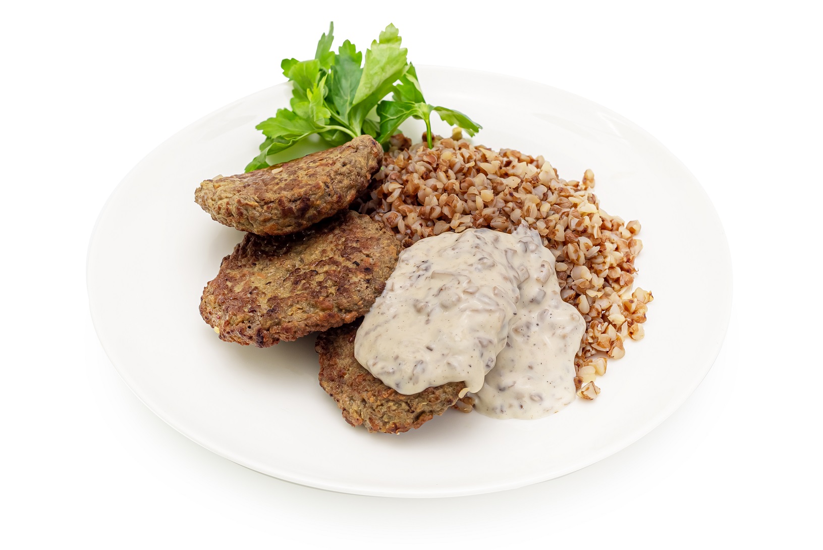 - Печень говяжья, лук репчатый, гречка, морковь, яйцо куриное, мука, грибы шампиньоны, сливки растительные, молоко, масло растительное, чеснок, соль, перец черный молотый