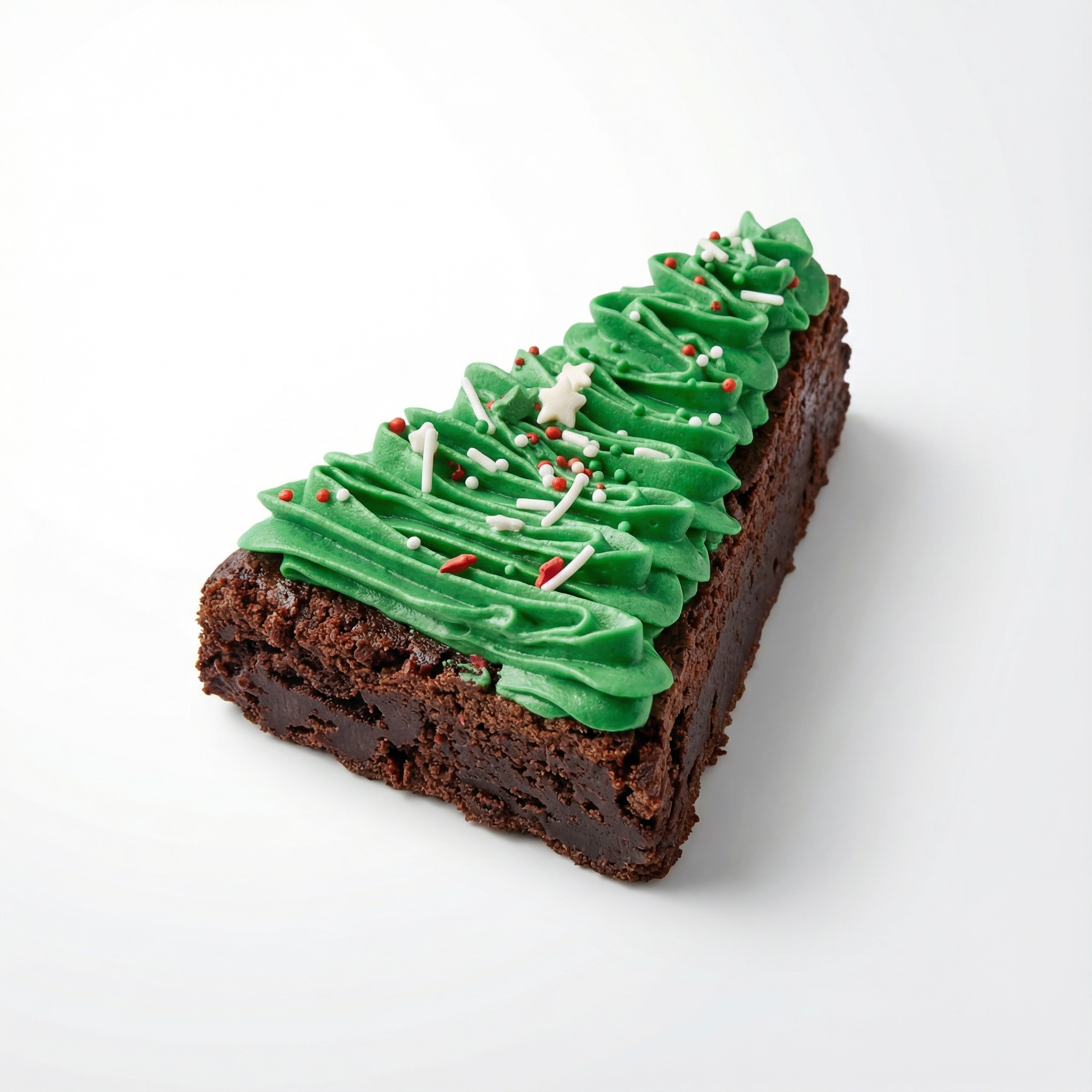 Наше новогоднее брауни — это сочетание насыщенного шоколадного вкуса и праздничного настроения. Влажная шоколадная основа с нежным творожным кремом и яркой новогодней посыпкой создаёт идеальный десерт для завершения праздничного ужина или сладкого подарка близким.