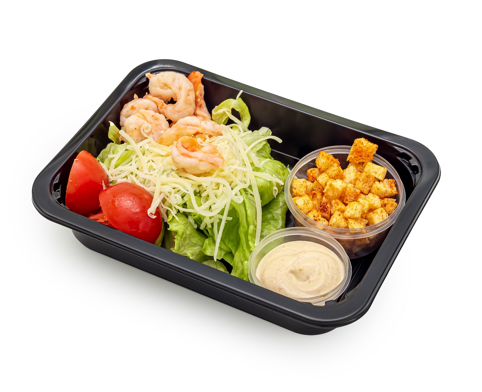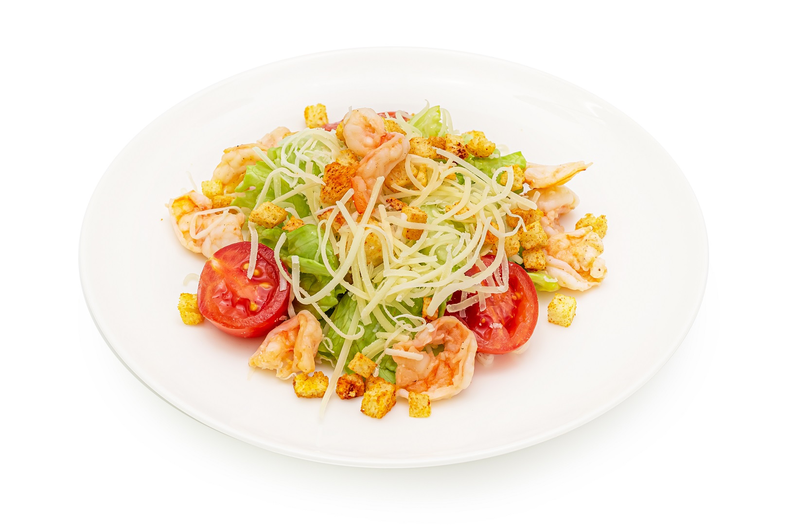 Наш салат «Цезарь» с креветками — это вариация классического салата, где вместо курицы используются креветки. Блюдо сочетает хрустящие листья салата, сочные морепродукты, ароматную заправку и хрустящие сухарики, дополняется помидорами черри и сыром пармезан.